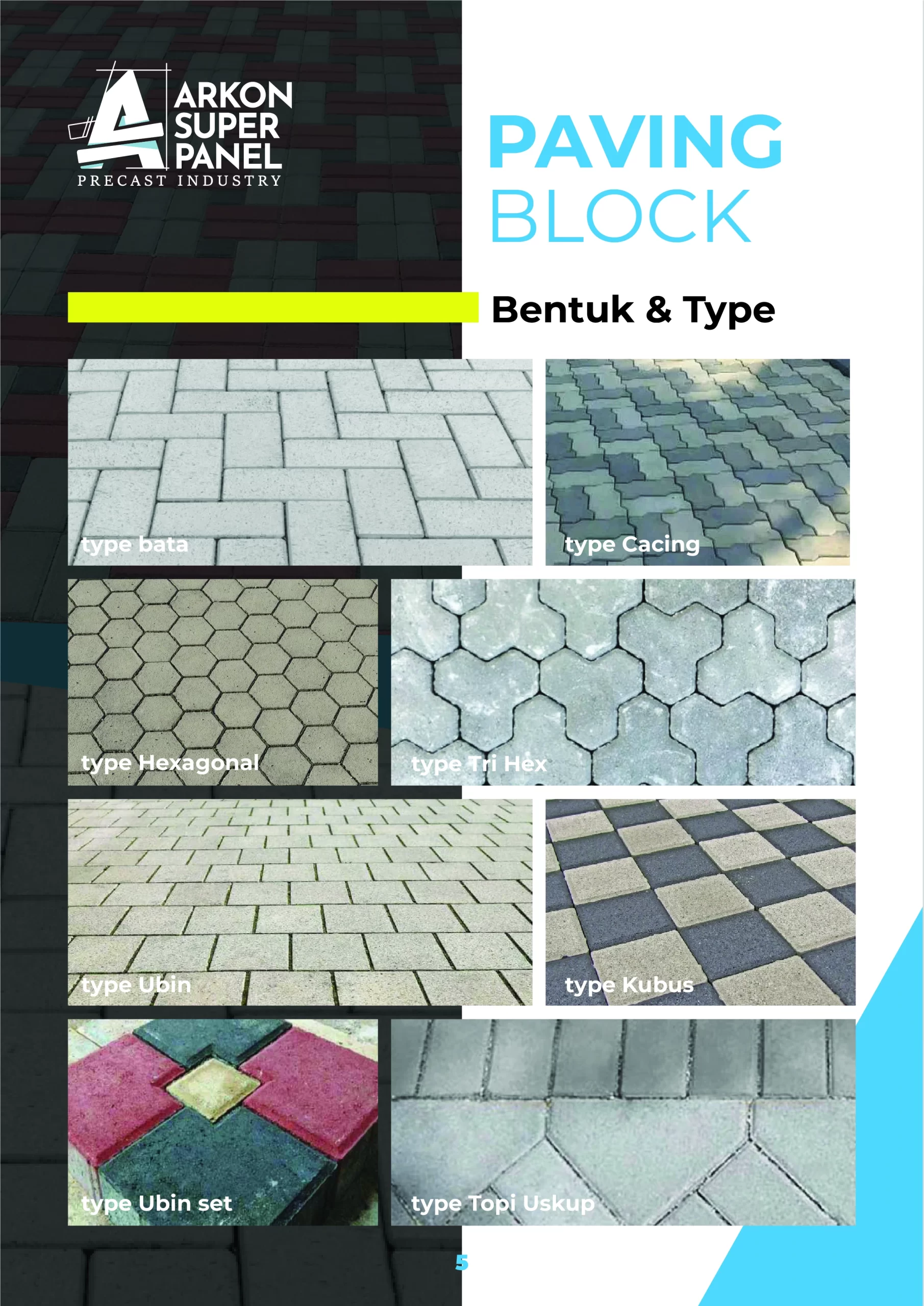 Bangun jalan, halaman, atau area parkir yang kokoh dan rapi dengan paving block berkualitas tinggi dari PT. Arkon Super Panel. Kami memproduksi paving block dengan standar mutu tinggi menggunakan bahan baku pilihan dan teknologi cetak modern.